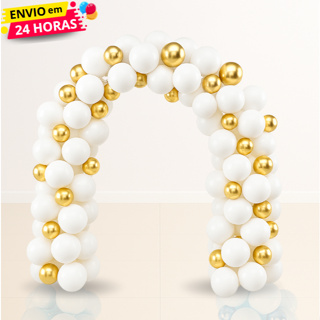 Kit 75 Balões Latex e Cromado - Branco e Dourado Cromado Decoração Aniversário Festas e Eventos