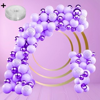 Kit 75 Balões Lilás 7" + Violeta Metalizado 5" + FITA Balão Bexiga Liso/Cromado Para Festas KIT54+F