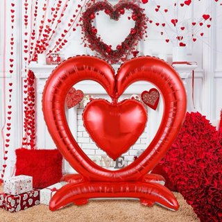 Kit 2 Balão Metalizado Coração Gigante Vermelho Com Base 90cm Festa Decoração