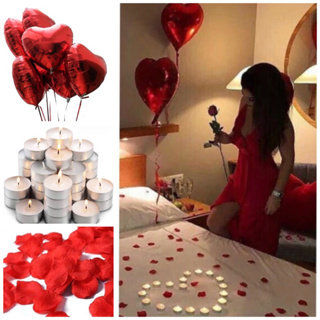 Kit Romântico - 500 Pétalas Artificiais / 20 Velas Rechaud / 10 Balões Coração