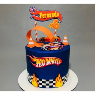 Topo de Bolo - Hot Wheels personalizado com nome e idade