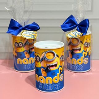 Cofrinho Personalizado MINIONS com embalagem + laço + tag - FAZEMOS EM TODOS OS TEMAS