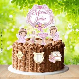 TOPO DE BOLO PERSONALIZADO BATIZADO MENINA (LEIA A DESCRIÇÃO)