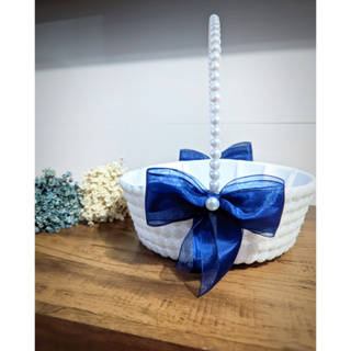 Cesta Daminha e Florista para Casamento Laço Azul Marinho