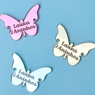 Kit Tag 50 Apliques de Borboleta 2cm em Acrílico com Nome Personalizado Crochê, Lembrancinha, Chaveiro Trico