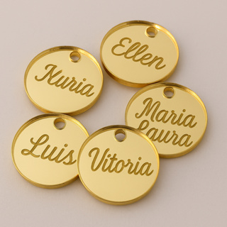 Kit Tag Redondo Disco Circulo Bolha Nome Inicial 2cm acrílico Dourado