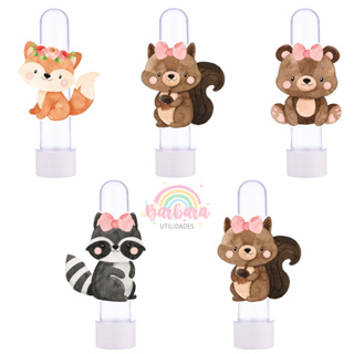 20 Tubetes + Apliques 3D Personalizado Lembrancinha Bosque Menina Rosa