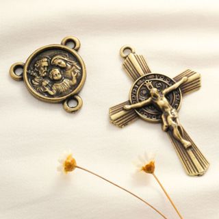 Entremeios Para Terço + Crucifixos Para Terço Sagrada Família Alta Qualidade Atacado Ouro Velho em Oferta na Shopee Shopee