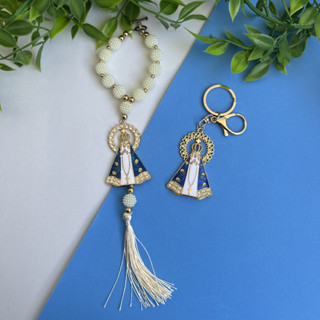 Nossa Senhora Aparecida em Pérolas e strass prata Azul ou Branca em Oferta na Shopee Shopee