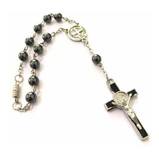 Mini Terço De Carro Medalha São Bento Pedra Hematita Prata em Oferta na Shopee Shopee