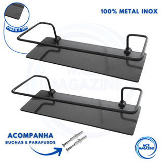 Kit 2 Prateleira Porta Shampoo Preto Banheiro Alumínio Vidro Reto Antiferrugem Suporte Parede Organizador