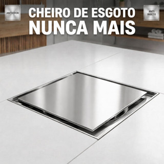 Ralo Quadrado Inox 10x10 Oculto Não é PVC Anti Odor Anti Inseto Seca Piso Porcelanato