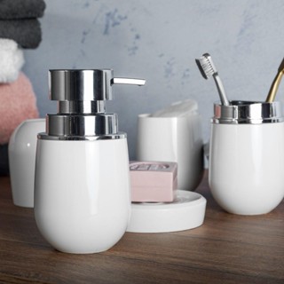 Kit Porta Sabonete Acessórios Banheiro Liquido 4 Pçs Branco