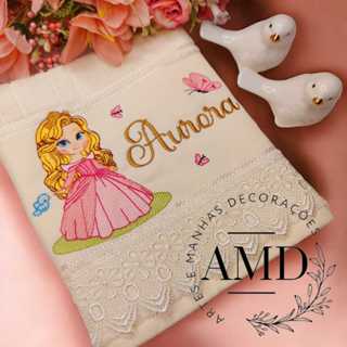 Toalhinha de mão 30x45cm personalizada PRINCESAS com barrado em guipir Artes e Manhas Decorações