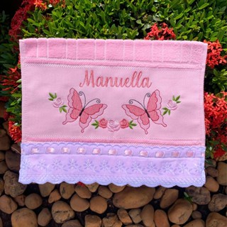 Toalha de Boca Bordada Borboleta Com Nome Premium
