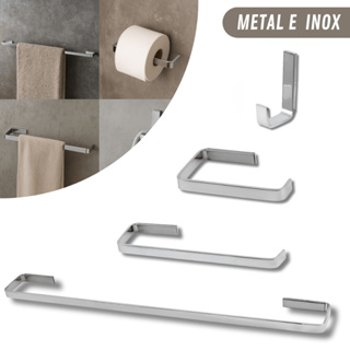 Kit 02x Porta Toalha De Banho Para Banheiro Em Alumínio e Inox Fixação Dupla