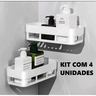 Kit Com 4 Prateleira Suporte Organizador Cozinha Banheiro Plástico Com Adesivo