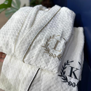 Roupão de Banho com Boradado Inicial do Nome Adulto Masculino e Feminino 100% Algodão Verão Inverno em Oferta na Shopee Shopee