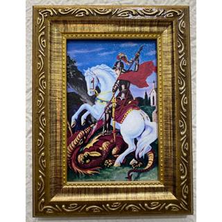 QUADRO DE SÃO JORGE 10X15 CM RESINADO MOLDURA DOURADA PREMIUM