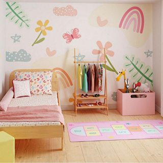 Adesivo Infantil Jardim Arco íris Colorido Lavável Auto Colante Decoração quarto Menina sem fundo