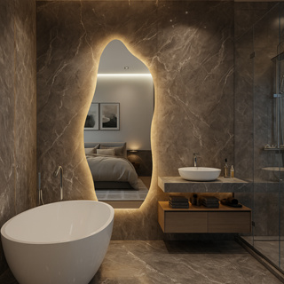 Espelho Orgânico Led 150cm x 40cm 170cm x 50cm Decorativos Luz Branco e Luz Amarela Flame Quarto Sala Salão Loja Luxo