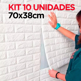 Kit 10 Placas Autocolante 3D Parede Tijolo Branco Lavável Fácil Instalação Impermeável