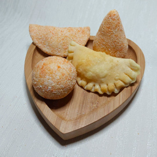 Salgados de biscuit, coxinha de biscuit, pastel de biscuit, batata frita de biscuit, comida cenográfica