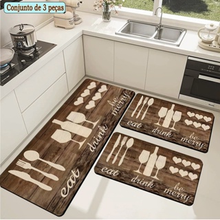 Kit 3 Tapetes de Cozinha - Borracha Antiderrapante, Super Absorvente e Secagem Rápida 90x34 cm, 60x34 cm