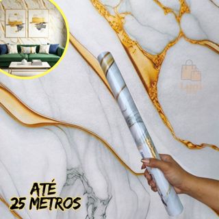 Papel de Parede Adesivo Marmore Dourado 5 Metros Envelopamento Marmorizado Autocolante Decora