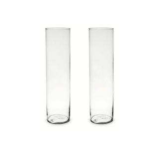 Kit C/ 2 Vaso Tubo De Vidro Transparente Cilindro 22x8cm