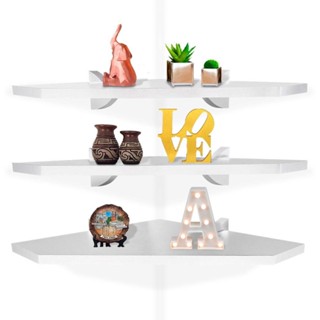 Kit 03 Prateleira De Parede De Canto Carvign Para Quarto Sala Cozinha Em MDP Branco