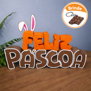 Letreiro Feliz Páscoa com Borda | Decoração Páscoa Orelha de Coelho - Enfeite de Mesa Vitrine