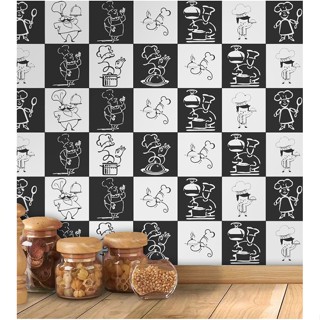 Papel De Parede Azulejo Decorativo Cozinheiro Preto E Branco