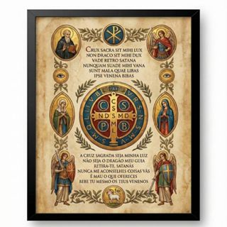 Quadro Placa Decorativa Poderosa Oração de São Bento Em Latim e Português