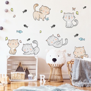 Adesivo de Parede Gatos e Borboletas Quarto Infantil Cores Neutras