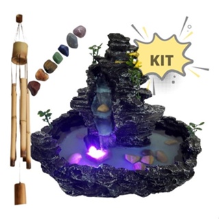 Fonte Água Imita Pedra Cascata Incensário Led Pedra Chakra