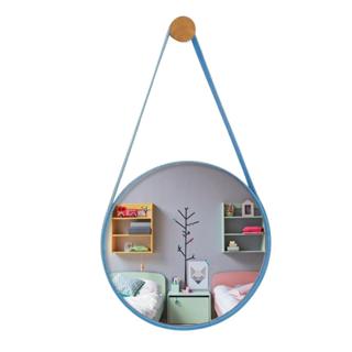 Espelho Decorativo Redondo Com Couro Adnet Infantil Quartos Salas C/ Pino Suporte