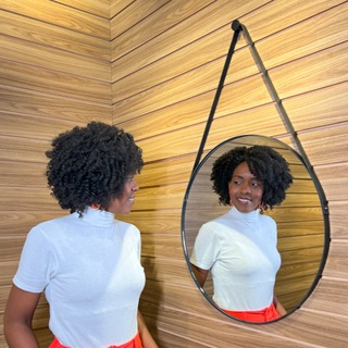 Espelho Redondo Adnet 40 cm Sala / Quarto / Banheiro / Com Alça Couro Suporte