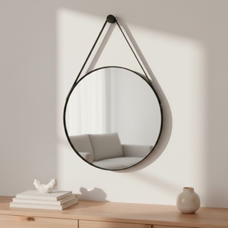 Espelho Moderno De Parede Decoração Sala Banheiro c/ Alça em Couro +Suporte de Fixação - 30cm
