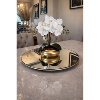 Orquídea Branca Luxo 38cm com Vaso Dourado Porcelana 6x18cm Decoração Sofisticada