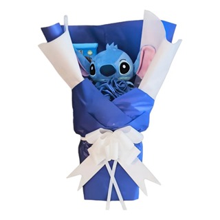 Buquê De Rosas Azuis Artificiais + Pelúcia Stitch Namorados Presente + Chocolate Oreo
