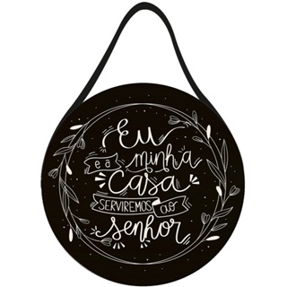 Placa com Alça de Couro Redonda Eu e Minha Casa Serviremos ao Senhor 20x20cm em Oferta na Shopee Shopee
