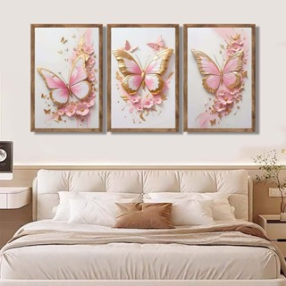 QKit 3 Quadros Decorativos Peças Borboleta Rosa Dourado Estilo Luxo para Sala de Estar Quarto ou Escritório em Oferta na Shopee Shopee