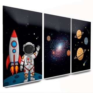 quadro criança infantil decorativo *nome personalizado* astronauta foguete espaço lua em Oferta na Shopee Shopee