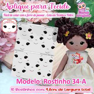Rostinho 34 - Olhos Aplique Adesivo para boneca de Tecido ou Feltro - Cola com o Ferro de Passar - Mamãe Corujinha