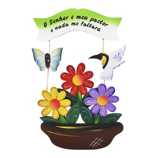 Placa Decorativa Vaso De Plantas Com Frase Religiosa Grande Pássaros MDF