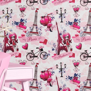 Papel de Parede Paris Fashion Amor Bicicleta Torre Eiffel Autocolante em Oferta na Shopee Shopee