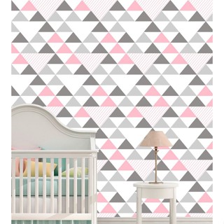 Papel de Parede Adesivo Geométrico Triângulos Cinza e Rosa Autocolante em Oferta na Shopee Shopee