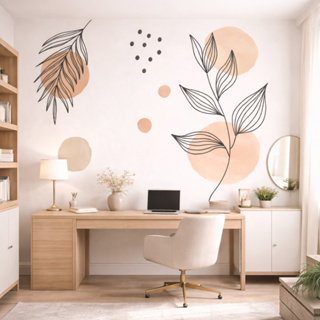 Papel De Parede Floral Ramos  Boho Neutro Moderno Decoração Sala Quarto Cozinha Fácil Aplicação em Oferta na Shopee Shopee