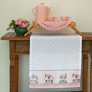 Caminho P/Mesa / Balcão e Geladeira 1,30m x 40cm - Estampa Digital Casinhas Rosê